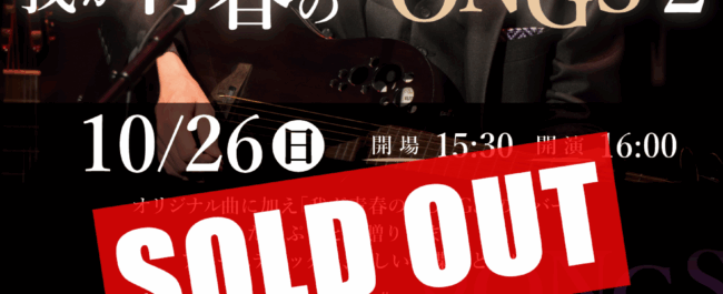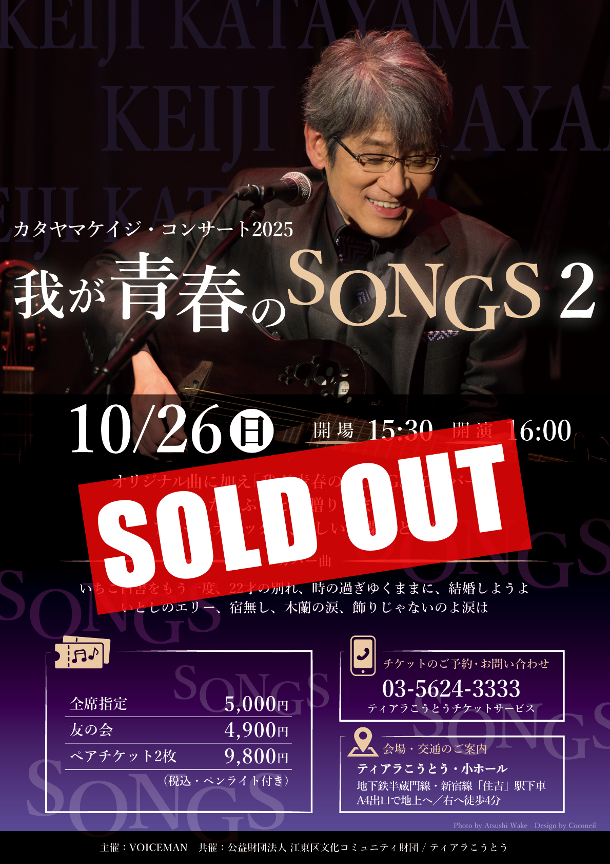10月26日(日)カタヤマケイジ・コンサート2025、「我が青春のSONGS 2」チケット完売いたしました。